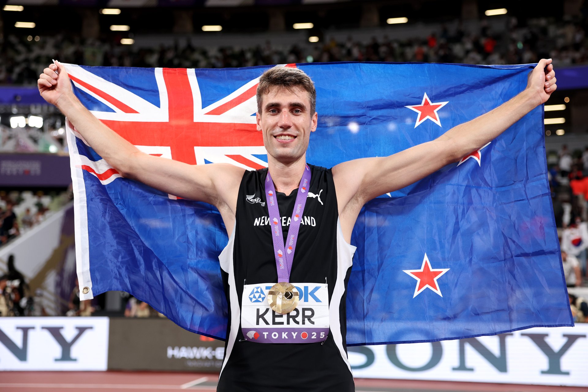 Hamish Kerr has etched his name further into New Zealand sporting history, completing a full set of global gold medals with victory in the men’s high jump at the World Athletics Championships.