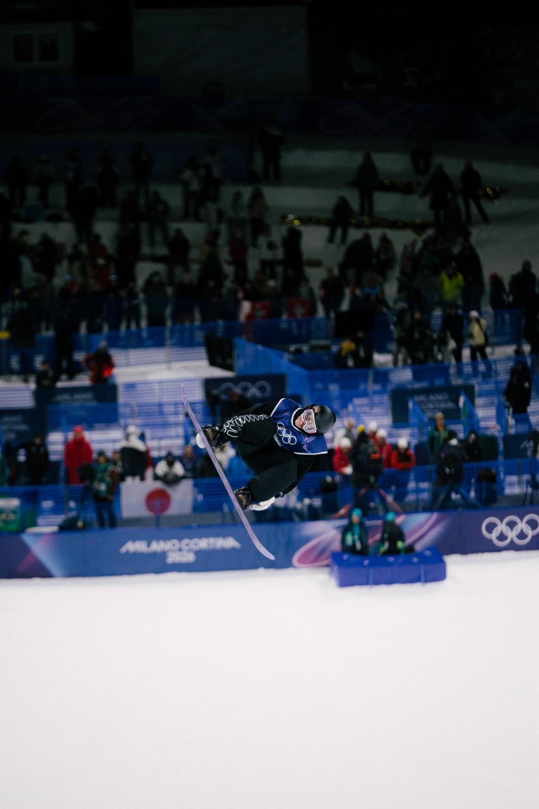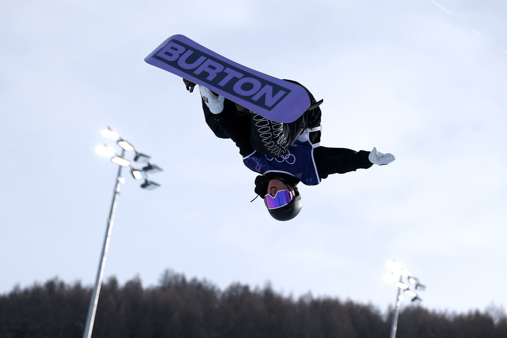We get our first look at the halfpipe, with snowboarder Cam Melville Ives set to compete under the lights.