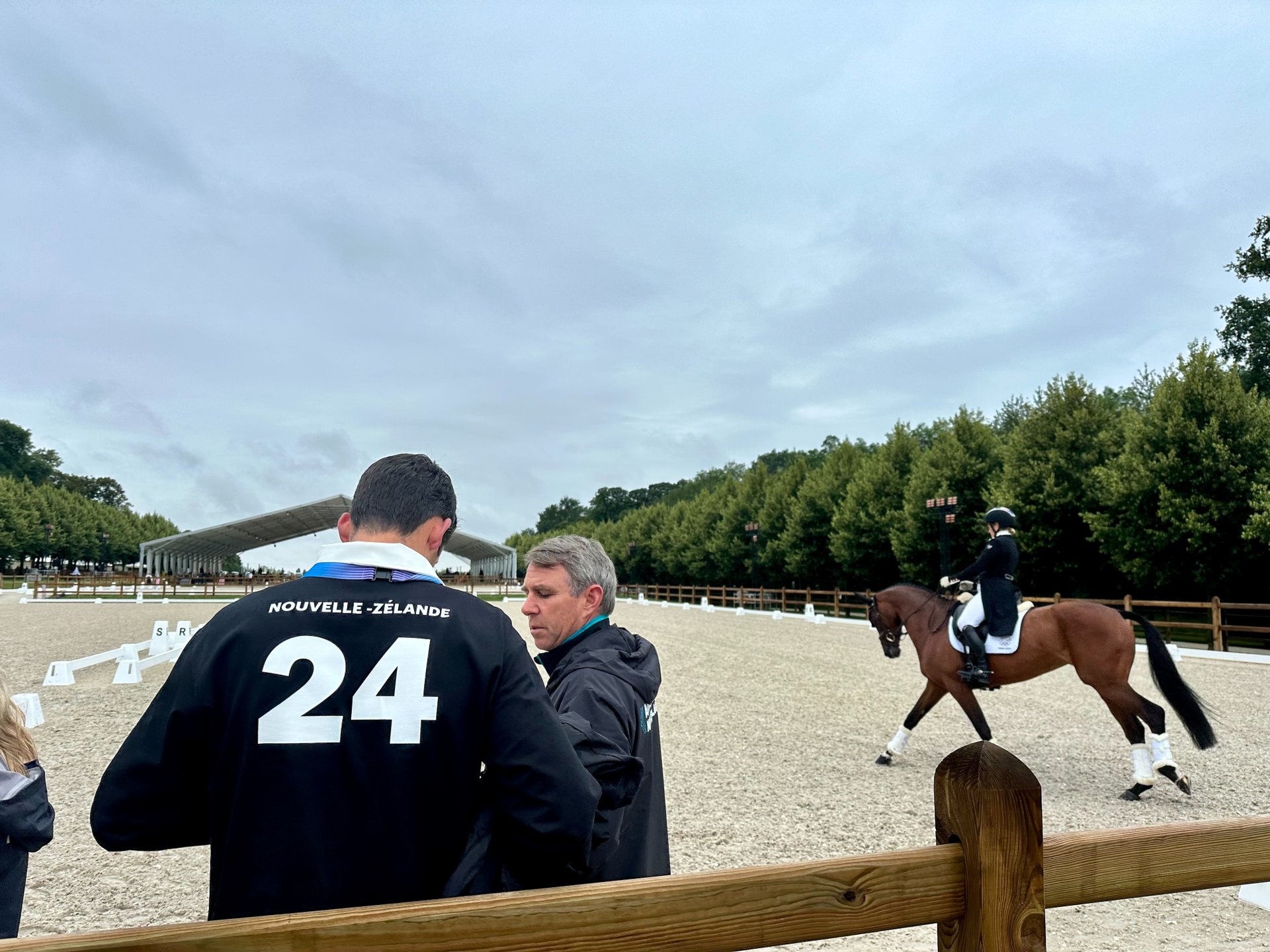 Jonelle Price and Hiarado warming up for the Eventing Dressage at the Château de Versailles.