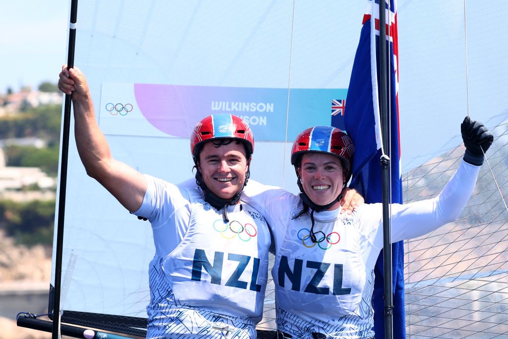 Micah Wilkinson and Erica Dawson won New Zealand’s second sailing medal of the Olympics when they sewed up the bronze in the mixed multihull (nacra).